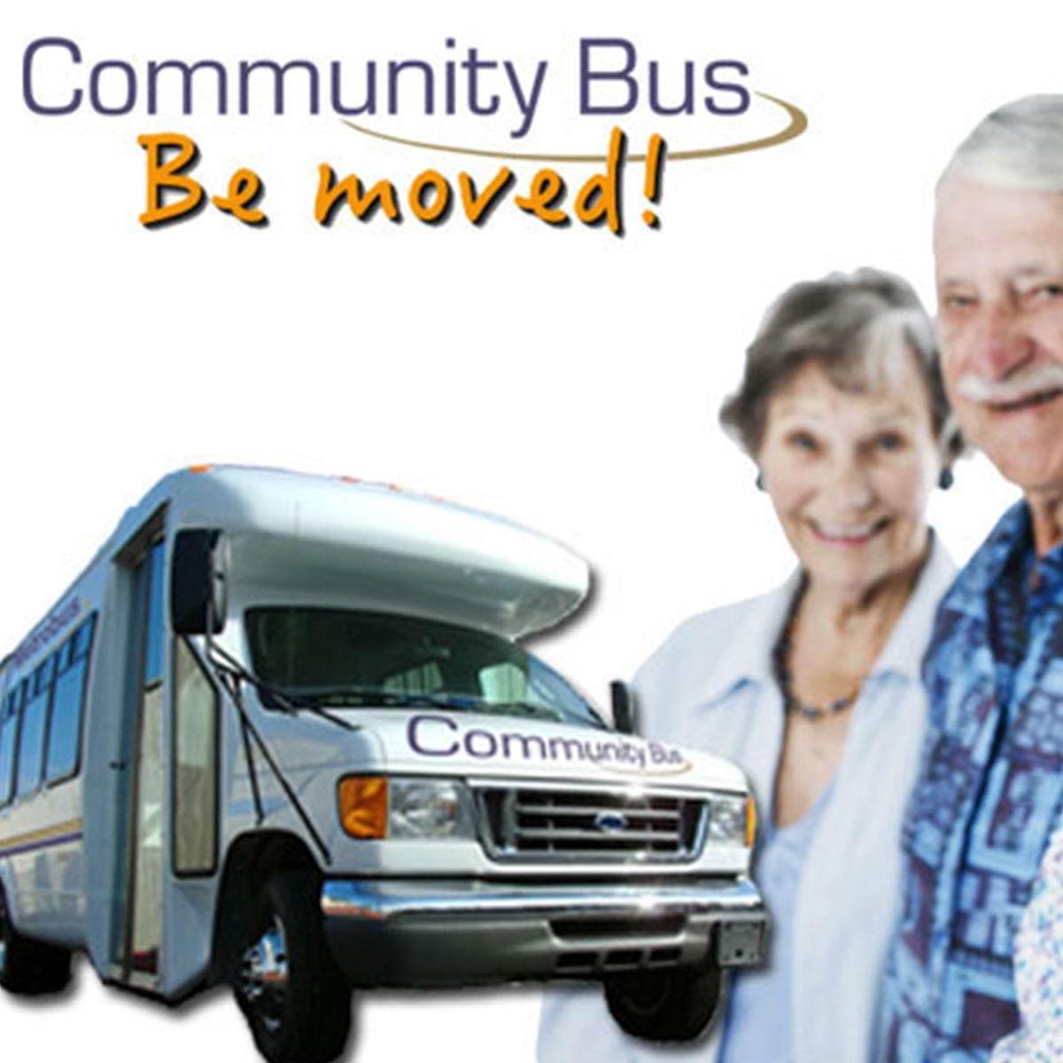 The Community Bus service is geared toward residents age 50 years and older and provides door-to-door pick up and drop off at a number of apartment complexes to places like shopping malls and recreation facilities.
