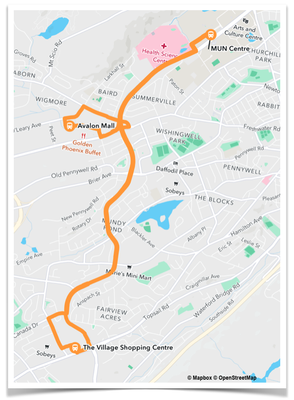 | => MUN Centre to The Village | => The Village to MUN Centre | ||||