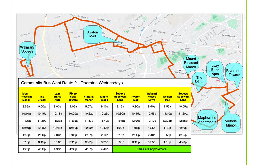 From Mount Pleasant Manor, this route services: